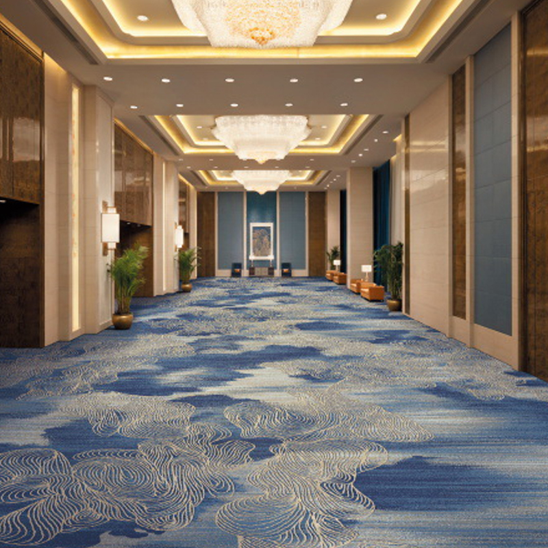 Axminster carpet has a flat and magnificent surface.The quality of the carpet up to international commercial heavyweight carpet standards. It has excellent performance in appearance retention, stability, comfort and durability. Generally applicable to hotel restaurants, walkways, banquet halls, bars, meeting rooms and other public places.